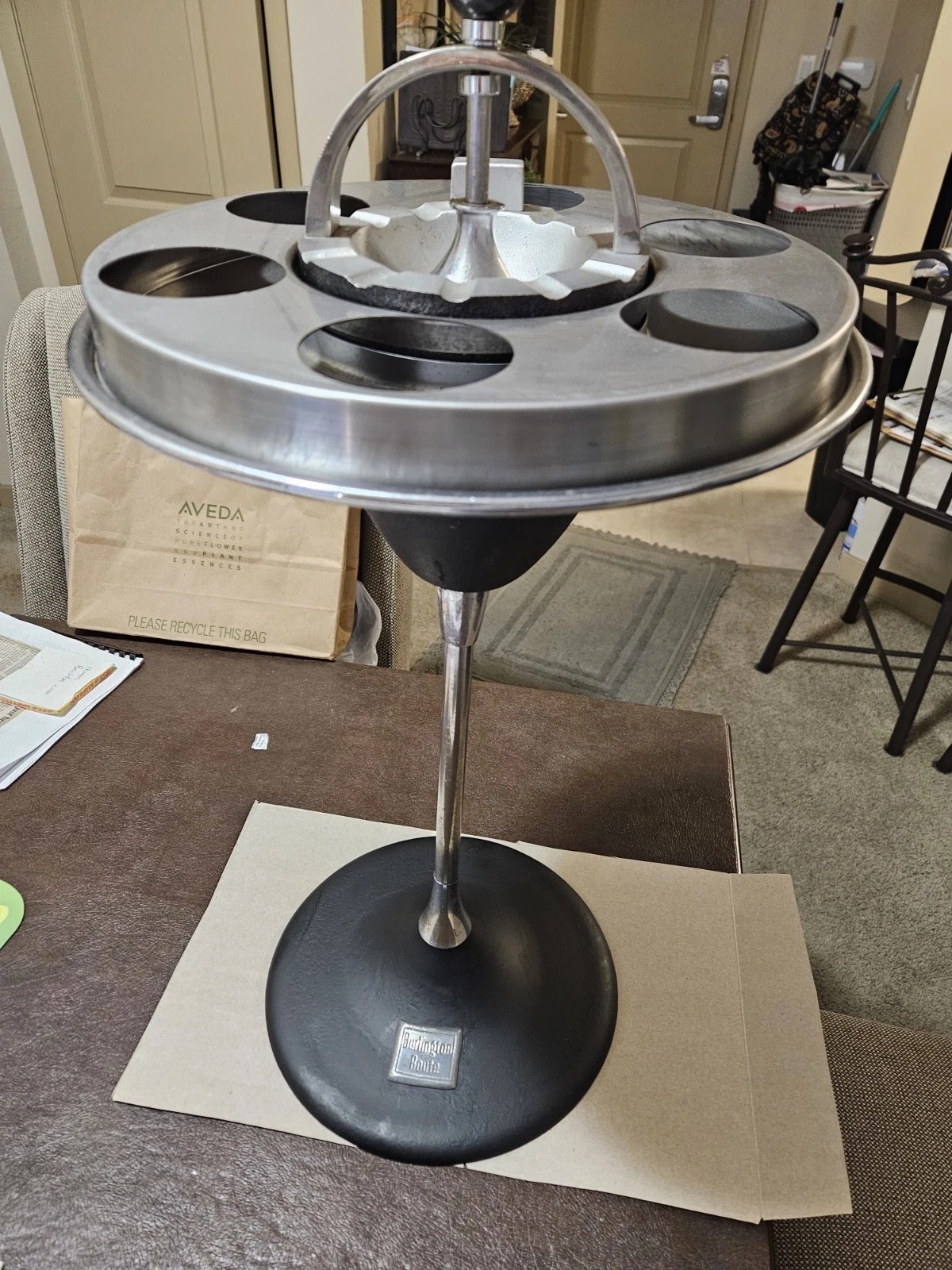 Thanks for posting that Budd Photo, I'd love to see more if you have more. I've been very seriously collecting CB&Q passenger items from the smallest of memorabilia up to real railcars. My collection goes pretty deep. I've been in the Private Passenger Car trade for 40 years now and have amassed a lot of stuff. I've owned at least 100 smoking stands over the years, and only 2 like this one, the other was a UP from a club lounge. I know the NP also used this style in the Traveller's Rest cars. This style was introduced pretty late in the game as a competitor to the normal "Climax" style of stands. The only use of these I know of after some research is the DZ obs cars. Attached are scans of other Q related stands, including 2 from the DZ obs cars and from the TCZ cars.