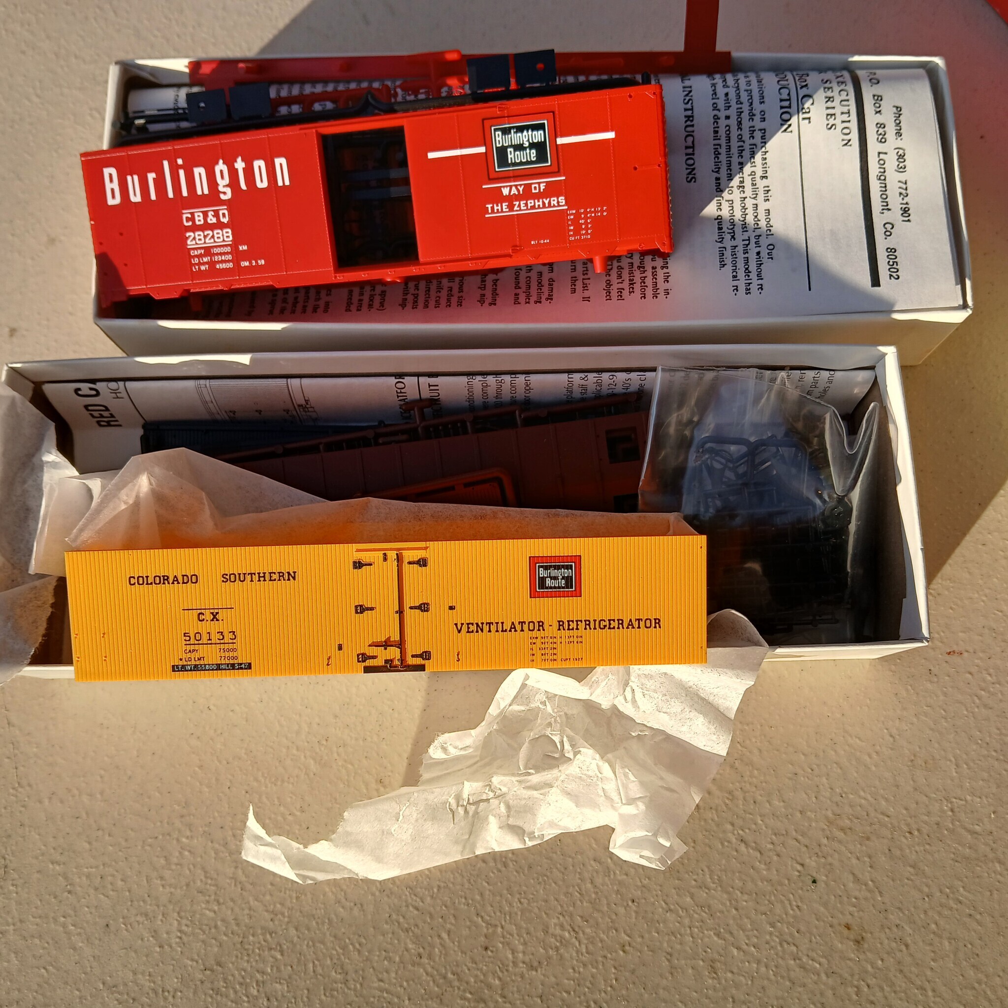 I am selling part of a collection with a fair number of CB&Q, Colorado & Southern and one Ft. Worth & Denver cars. Photos attached. They are both kits and RTR.