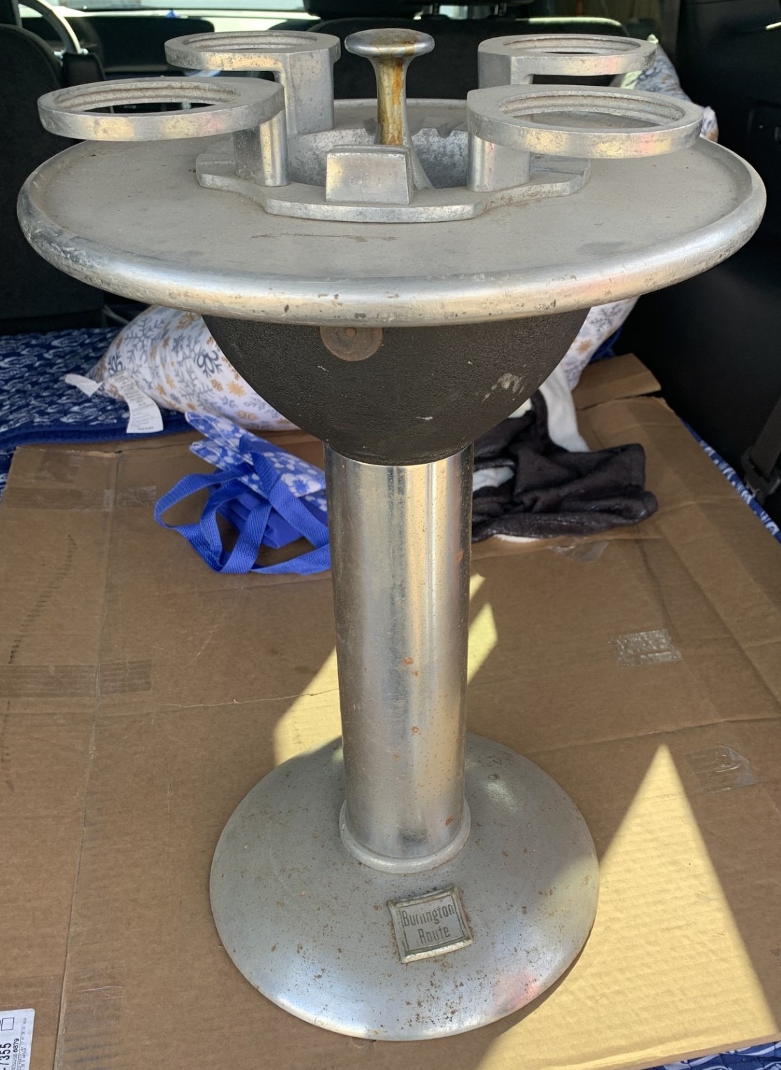 Good news; is I have a photo of the 1956 DZ dome car that shows the cigarette stand you bought, see attached. You might want to look at the BRHS web site and search for BROCHURES. Many have interior shots that could further help you identify it. I would start
